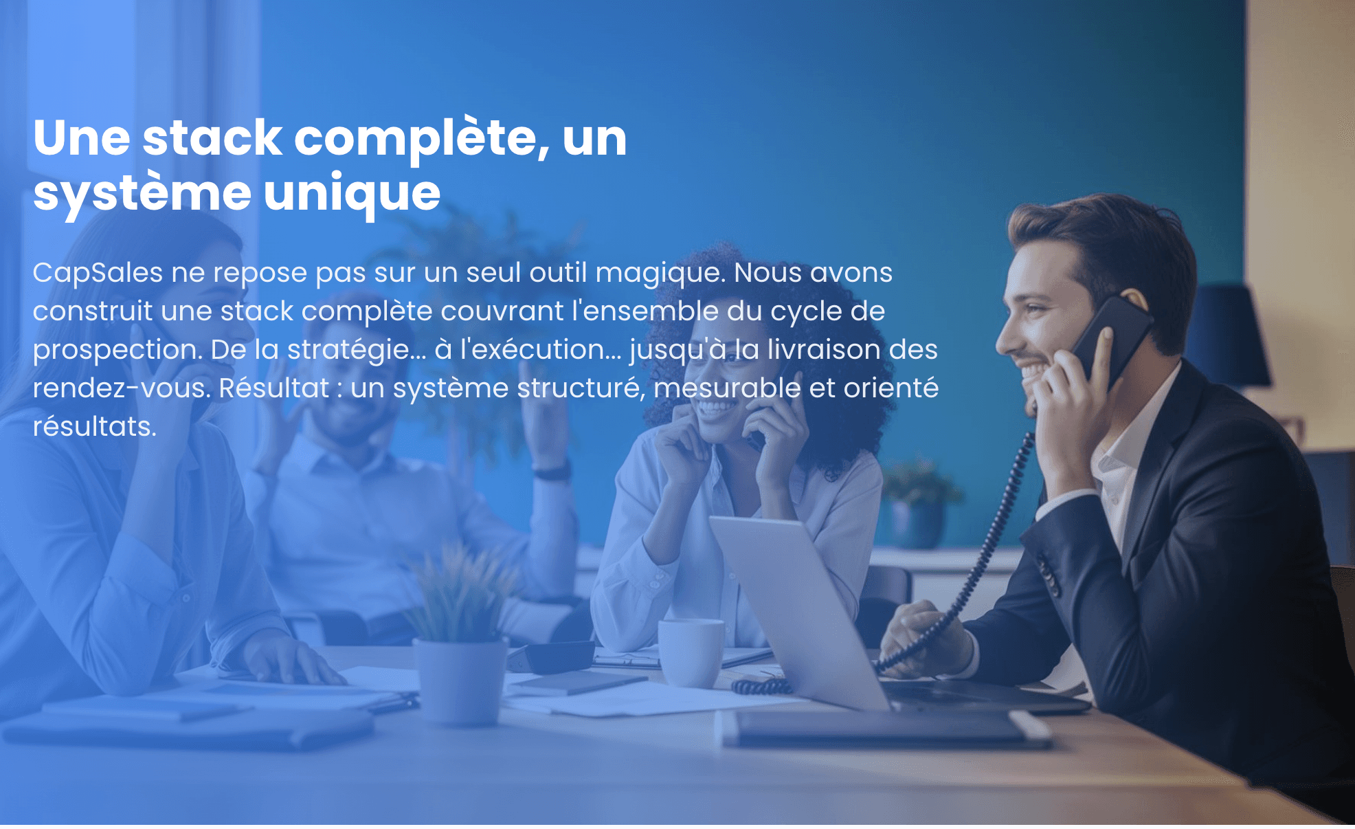 CapSales s’appuie sur une stack de 8 outils spécialisés pour structurer votre prospection, qualifier vos prospects et générer des rendez-vous réellement exploitables.
